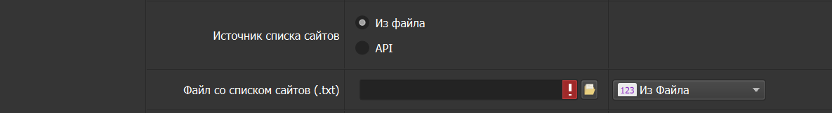 В этом режиме укажите API в виде строки, к которому софт будет обращаться. Софт будет получать сайты по запросу к этому API.